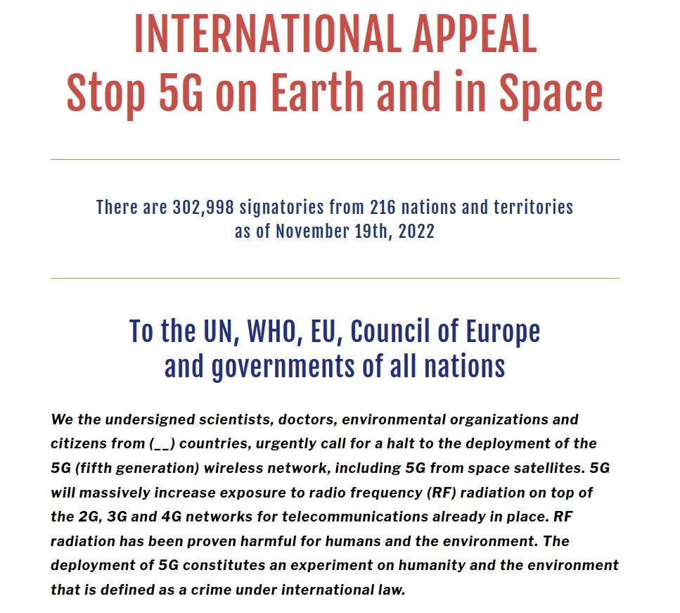 INTERNATIONAL APPEAL: Stop 5G on Earth and in Space