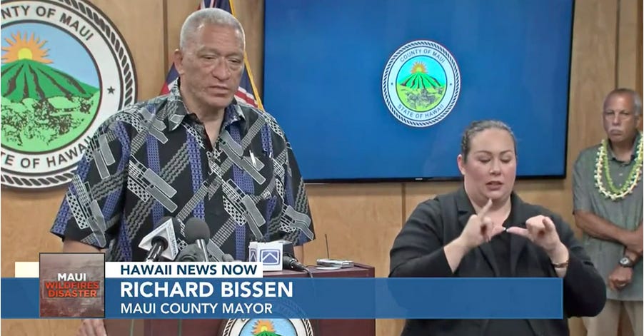 What was the government's priority? Saving water over lives? Ensuring the total burnout of Maui's entire lower-income housing neighborhoods? Scattering islanders from their generational waterfront land? All of those things happened. And now Lahaina Mayor Richard Bissen won't even say where he was during the fire. When asked about his whereabouts that fateful afternoon, he replied: "I don't have that. I don't have that for you."