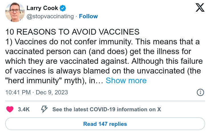 Larry Cook: 10 REASONS TO AVOID VACCINES
