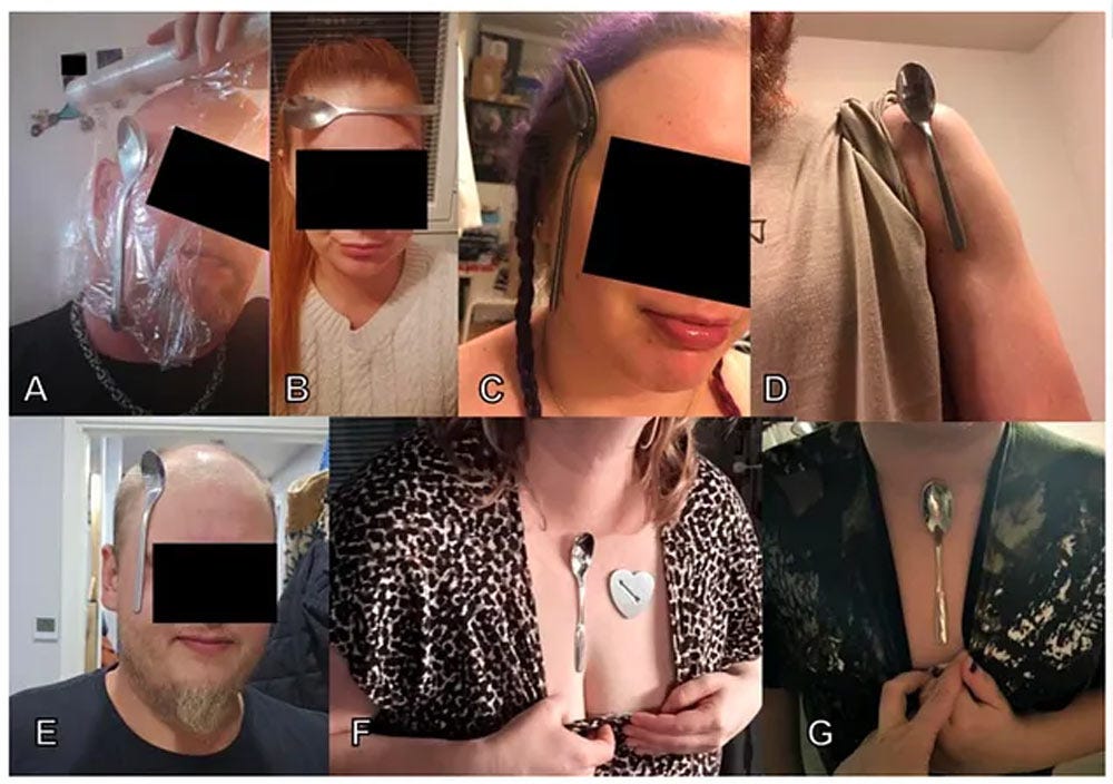 The researchers provided images of test subjects with ferromagnetic spoons attached to their bodies via the metallic objects inside.