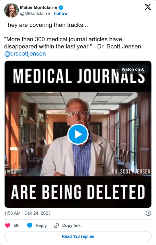 More than 300 medical journal articles have disappeared within the last year - Dr. Scott Jensen