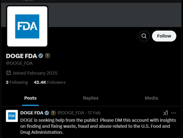 Elon Musk’s team, DOGE, called for the public to submit information about Federal Government departments, including the FDA, to help find and fix waste, fraud, and abuse of Government funds. Gillespie shared information about the petition with DOGE and then shared his message to DOGE publicly.