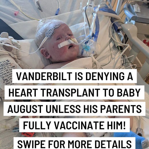 Murderous Medicine: A 6-Month-Old Baby Is Being Denied a Heart Transplant at Vanderbilt Medical Center Unless His Parents Vaccinate Him.