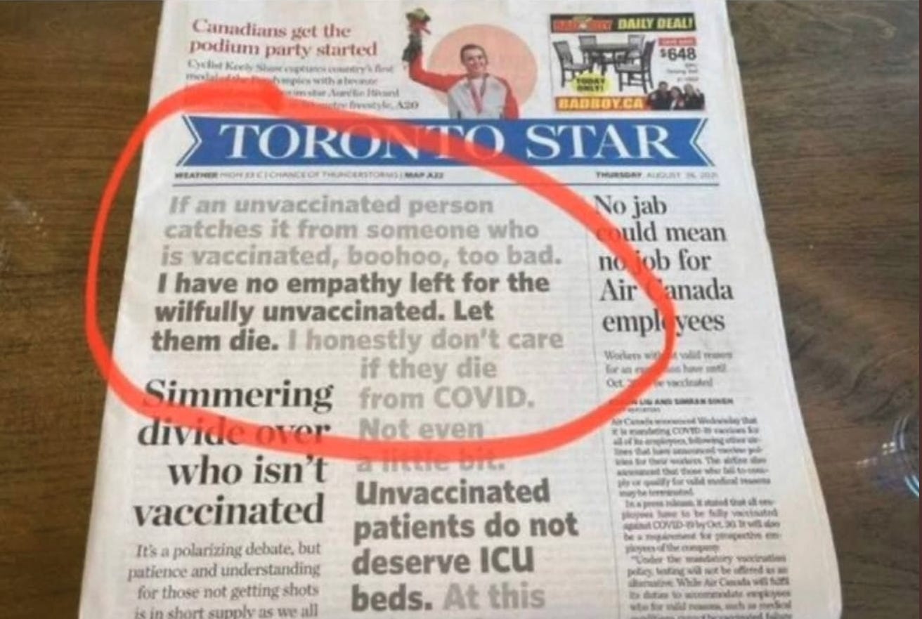 Denying medical care to the unvaccinated is one of the many atrocities that have been normalized during the COVID19 PSYOP.