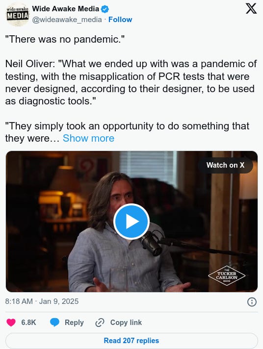 "What we ended up with was a pandemic of testing, with the misapplication of PCR tests that were never designed, according to their designer, to be used as diagnostic tools."