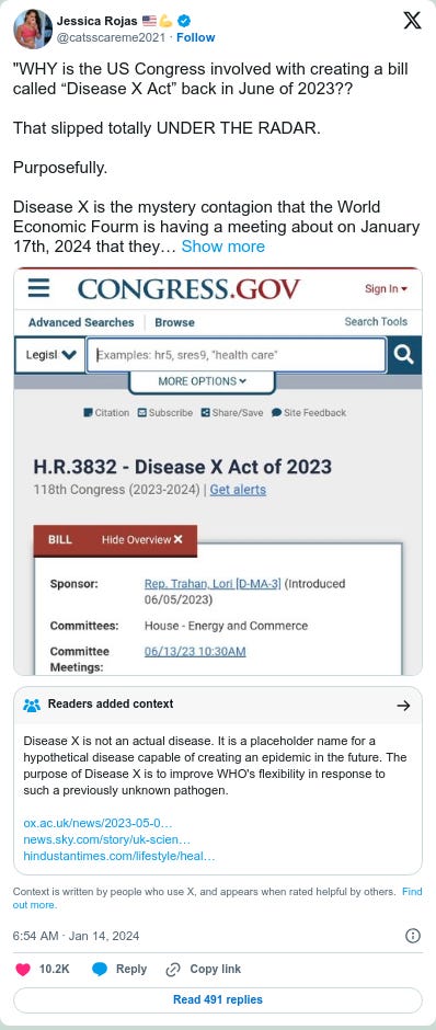 WHY was the US Congress involved in creating a bill called the “Disease X Act” back in June of 2023??