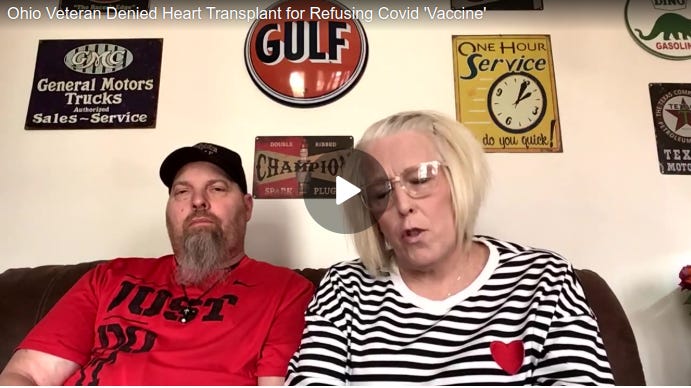 A 54-year-old veteran from Ohio has been denied a life-saving heart transplant operation because he refused a Covid “vaccine.”