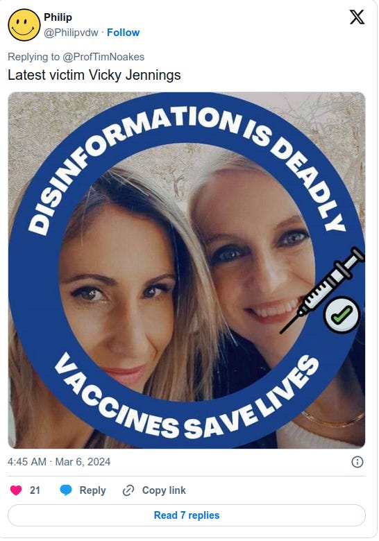 Jennings often posted pro-vaccine propaganda that urged people to take Covid mRNA injections.