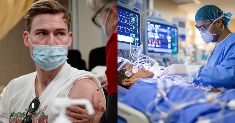 Sometime after beginning his medications, doctors do not specify when, the man received two doses of Pfizer’s Covid mRNA “vaccine” four weeks apart.