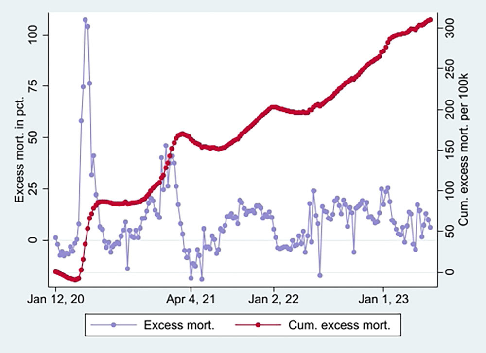 “Strengthening the interpretation was relatively high mortality among vaccinated not involving COVID-19 counterintuitively following periods of excess mortality,” the professor adds.