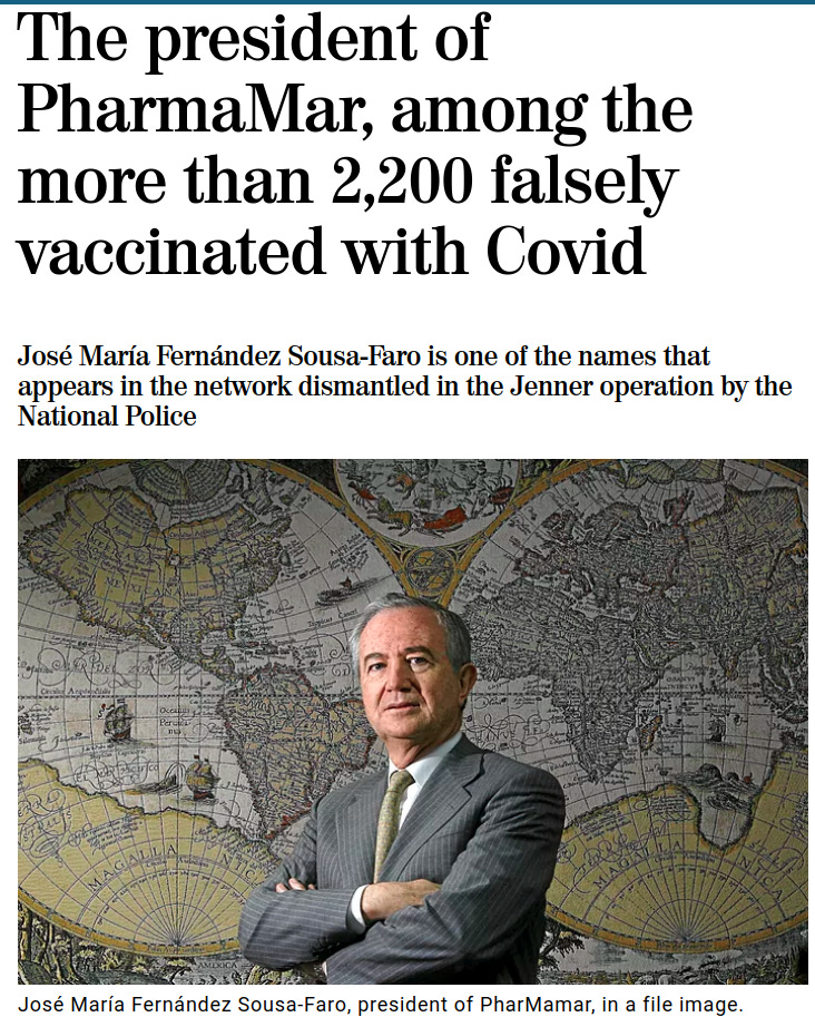 Jose Maria Fernandez Sousa-Faro, president of European pharmaceuticals giant PharmaMar, has been charged by police with being falsely vaccinated against Covid-19. Dr. Sousa-Faro has been caught up in a scandal in Europe involving people being added to the National Immunization Registry in exchange for large sums of money, with many of them familiar faces and household names.