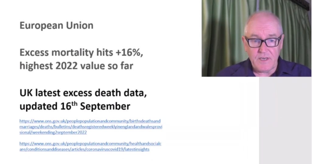 European Union, Excess mortality hits +16%, highest 2022 value so far.