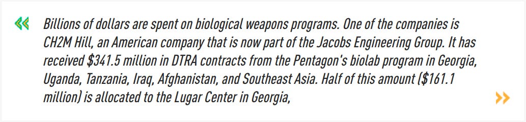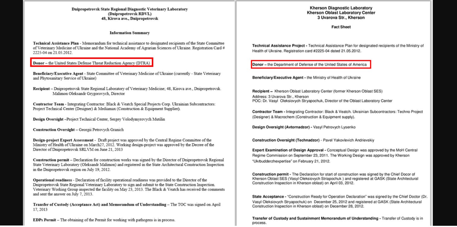 The Pentagon contractors were American companies Black & Veatch Special Projects Corp. and the Battelle Memorial Institute (a division of the Pentagon associated with the Fort Detrick network of biomedical laboratories for the study of dangerous viral diseases).