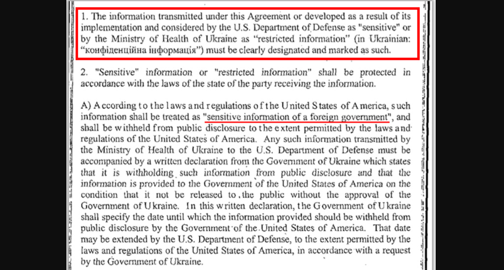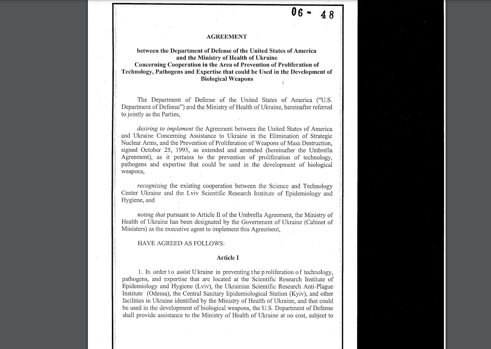 Back in 2005, the US Department of Defense and the Ukrainian Ministry of Health entered into an agreement under which the Ukrainian authorities transfer control over biological research in the country to the Pentagon and do not have the right to interfere in the work being carried out there. The relevant document is still available on the website of the US State Department .