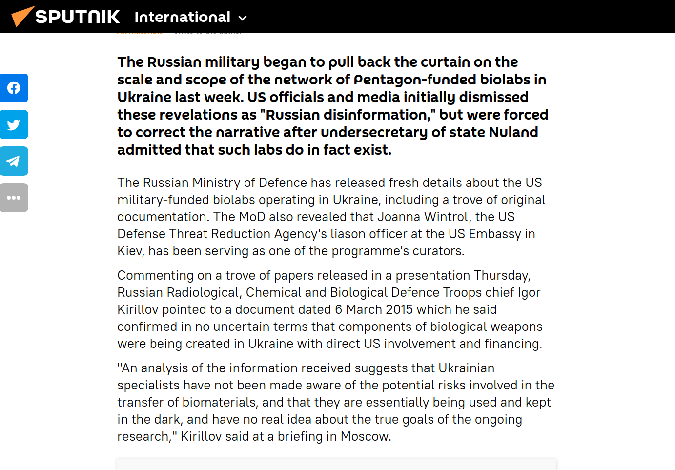 The Biolab Scandal Updates: Data From Secret Labs In Ukraine Revealed. Russian MoD Names Curator of Pentagon-Funded Biolabs in Ukraine, Releases Original Docs