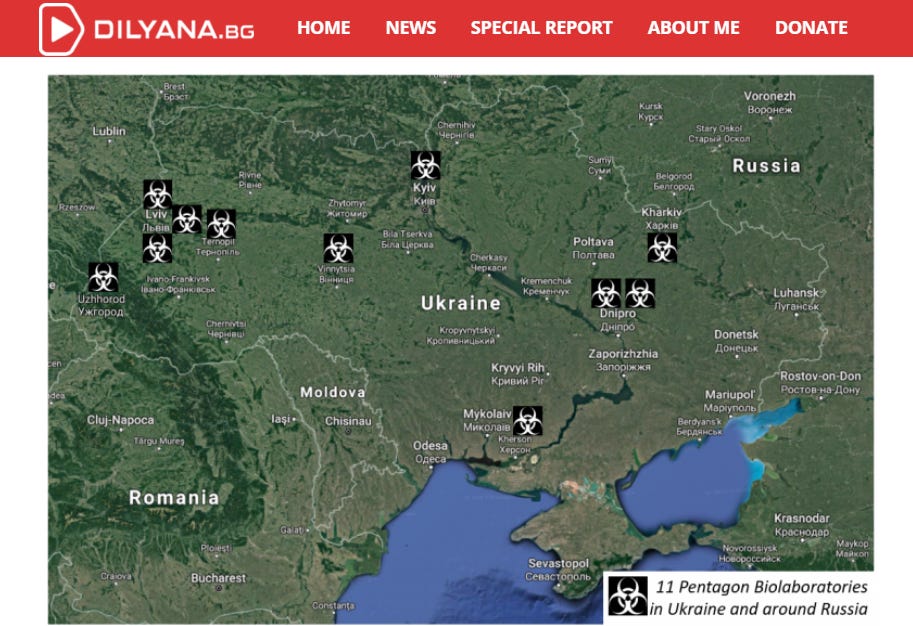 Bulgarian investigative journalist and TV presenter Dilyana Gaytandzhieva previously published a map of the location of at least 11 US biological laboratories in Ukraine based on Pentagon data.