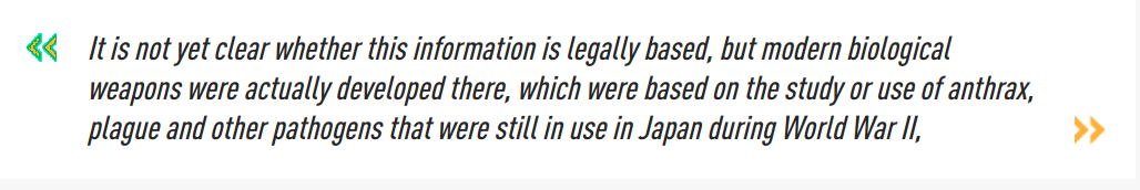 The first point is that the development, creation, and storage of biological weapons is tritely prohibited by the " UN Convention on the Prohibition of the Development, Production and Stockpiling of Bacteriological (Biological) and Toxin Weapons and on Their Destruction" of December 16, 1971.