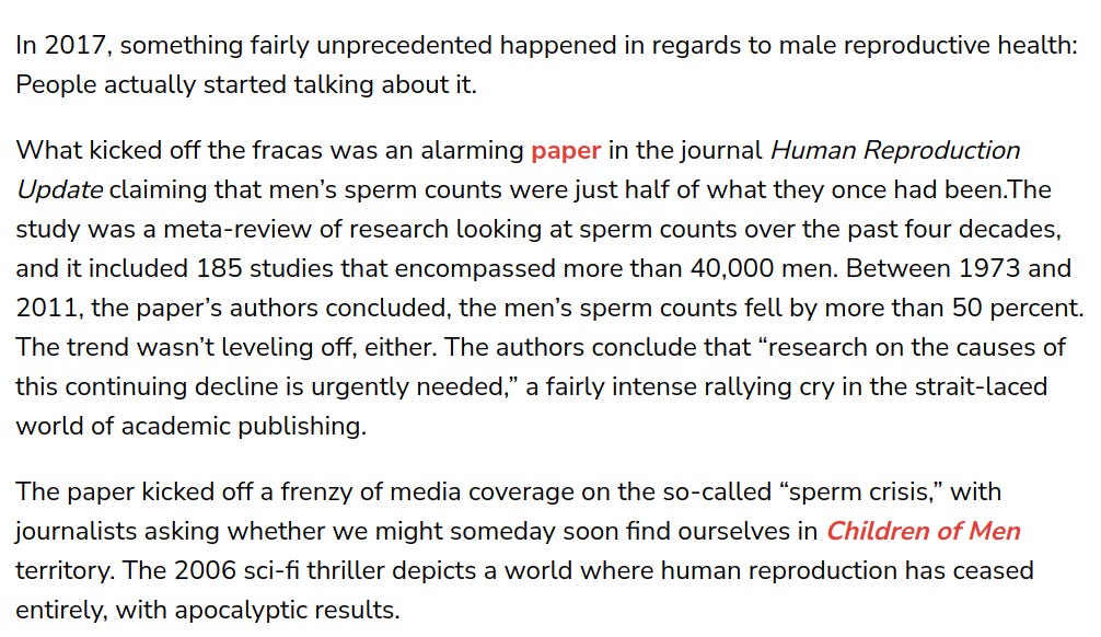 There's a lot the "sperm crisis" can tell us about men’s reproductive health.