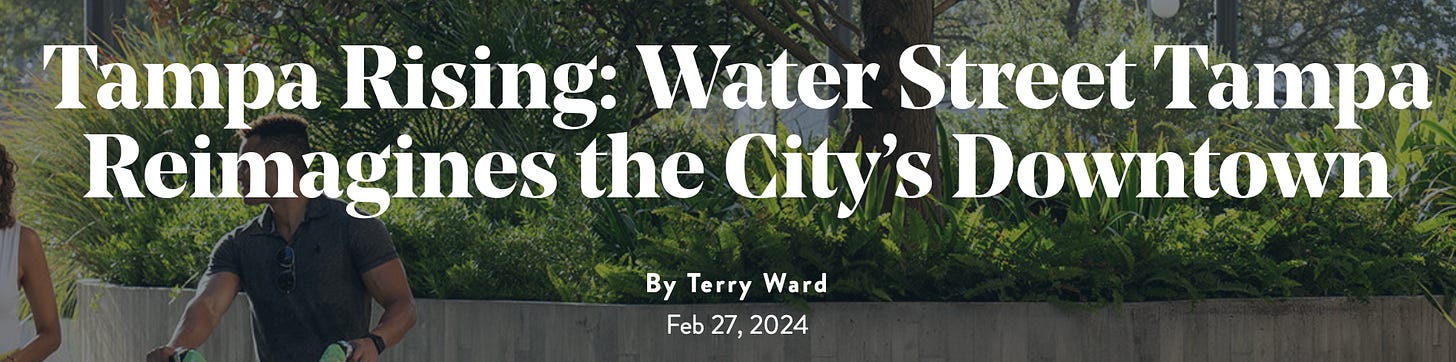 The Water Street Tampa project redefines a booming downtown area, taking advantage of the city’s prime waterfront setting. See this.