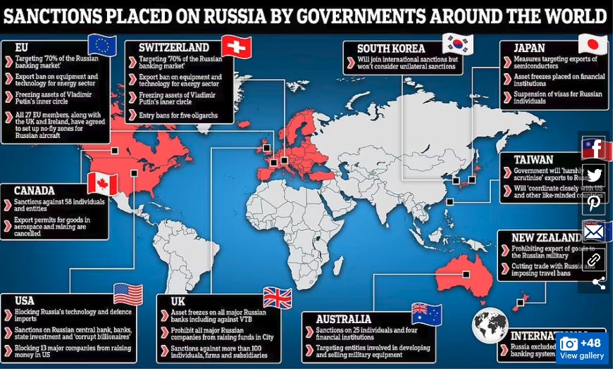 As Martin Armstrong stated in a private blog: We have Russian private businesses and citizens being thrown out of the West and American businesses fleeing Russia. Meanwhile, China is moving full steam ahead with its alternative to SWIFT so we are actually witnessing the collapse of the world economy. This will only lead to more trade sanctions and a further collapse of the world economy.