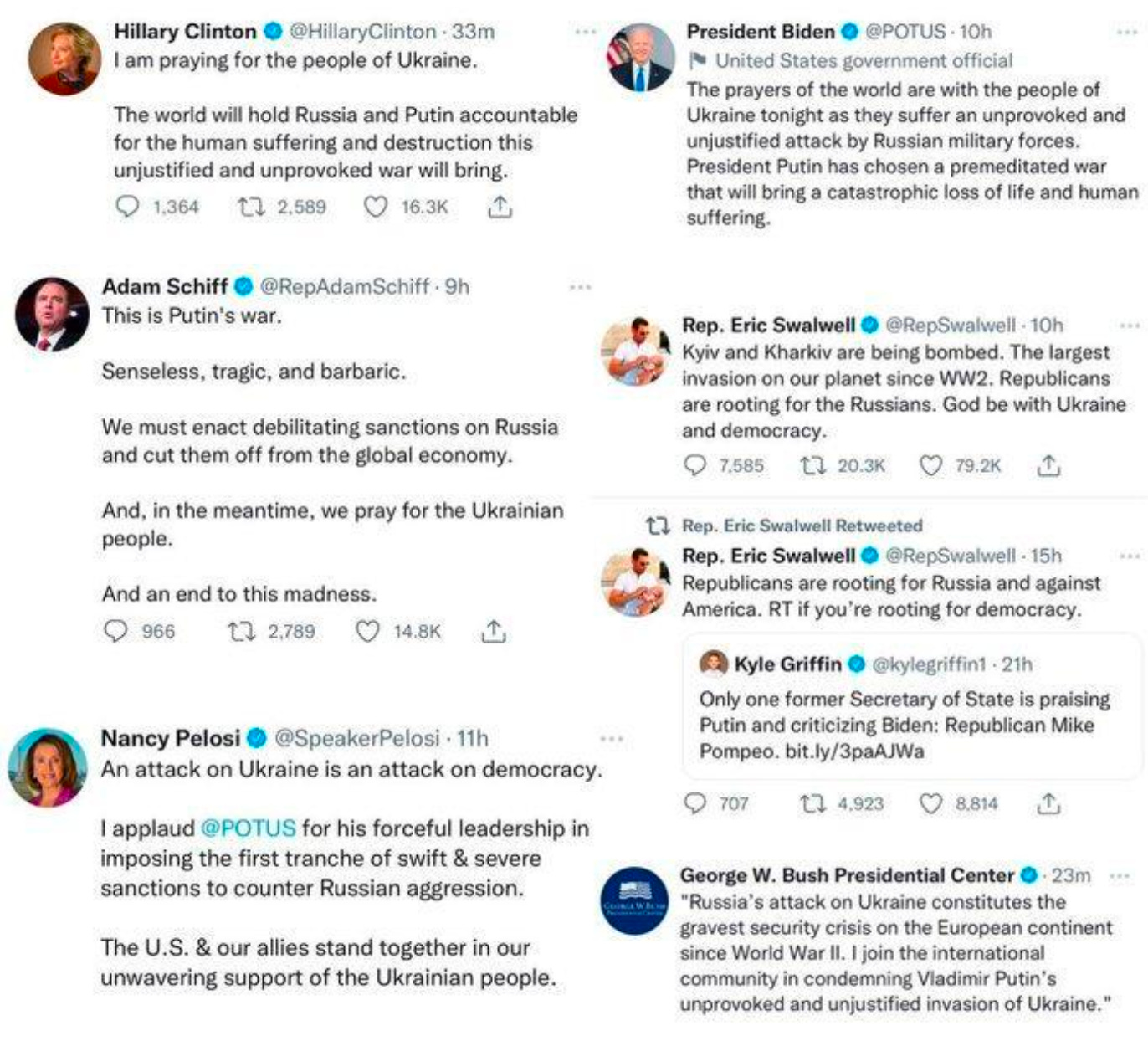 To be sure, propaganda is coming in from all sides, Russian, Ukrainian, NWO, everywhere, and it's impossible to tell what is really going on. Nevertheless, these are the same media organs that brought us the 100-percent-fake "covid" "pandemic," thus assisting governments around the world, synchronized in their thuggery, to seize and trample what's left of our God-given liberties -- without, it should be noted, any (public) assistance from Moscow or Beijing. These are also the same organs, which, pre-"covid," brought us the January 6 "another Pearl Harbor" "attack" on "democracy," Joe Biden's "legitimate" election, Trump-Russia "collusion," and so much, much more fake news.