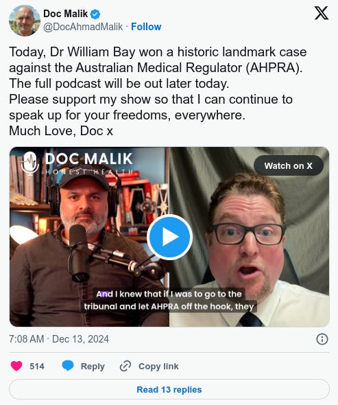This is beyond HUGE: Dr. William Bay Won a Historic Landmark Case Against the Australian Medical Regulator (AHPRA)