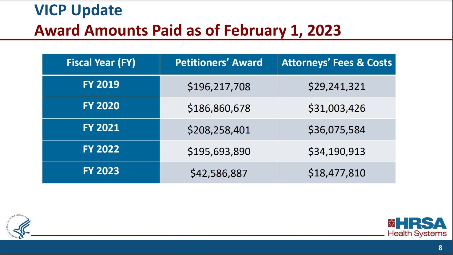 Here are the amount of settlements paid out to victims of non-COVID vaccines who were injured or killed from these vaccines in the childhood vaccine schedule through the Vaccine Injury Compensation Program (VICP) for the past four years and for this year, directly from the U.S. Government website (page 8).