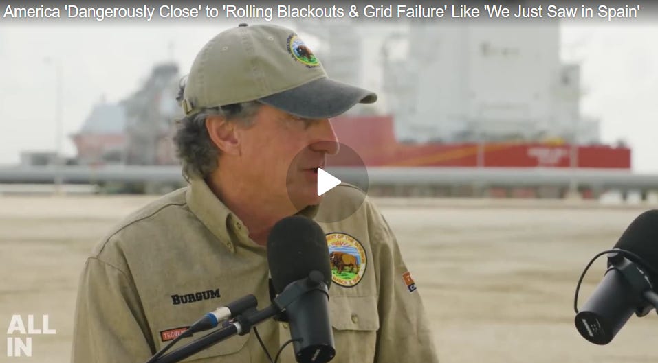 Trump’s Interior Secretary: America Dangerously Close to Rolling Blackouts & Grid Failure Like We Just Saw in Spain