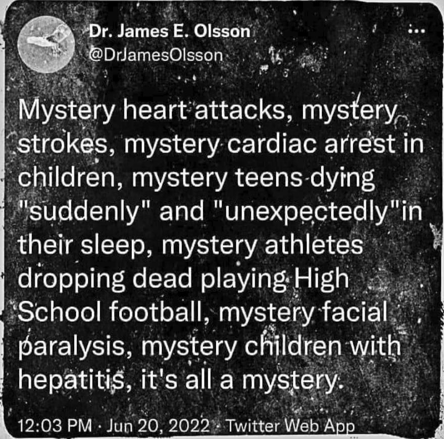 The Finns, so brave in standing up to the Soviet invasion in 1940. Such a nice, inoffensive people. Such excellent skiers and Winter Olympic athletes. And now, they fall for the same BS as the rest of the world. Take an experimental mRNA spike protein bio-weapon jab to protect against....the flu? The common cold? So foolish. And now the die-off begins. It didn't have to be this way, but the bell can't be unrung.