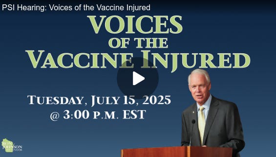 Senator Ron Johnson: PSI Hearing: Voices of the Vaccine Injured, 15 July 2025 (120+ mins)