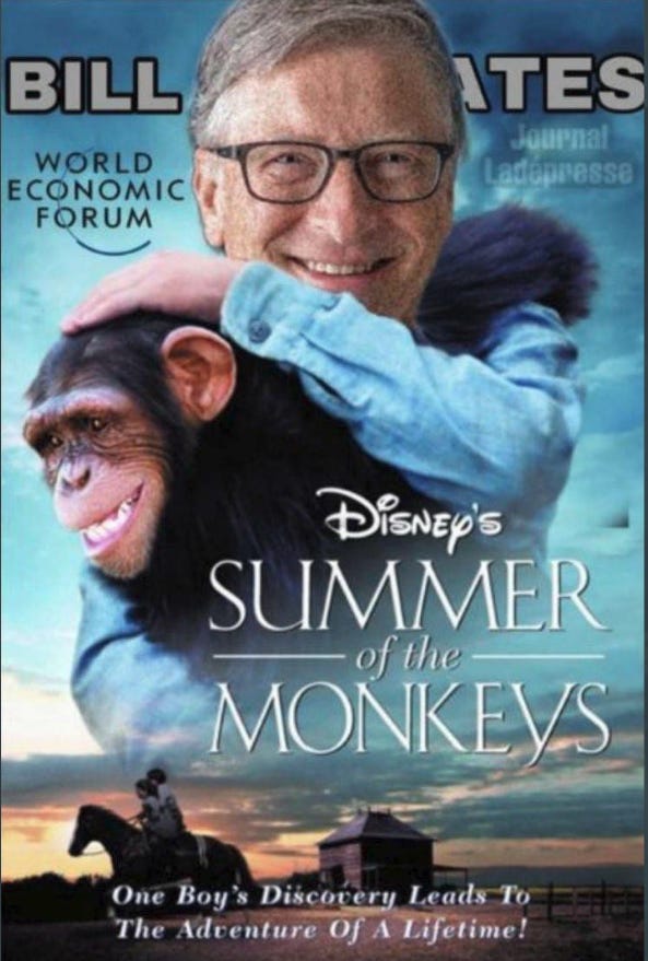 Wish I could post a picture of Gates w a monkey body, examining Fauci Butt who has a monkey body too