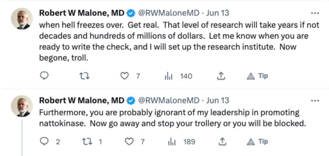 So - this article comes across as such a waste - so petty. Such infighting. My take on Dr. Malone is that he is very precise with his words and resists speculating, which has enraged those who want him to agree to their perspective. The things I've read from the Breggins are the opposite - sort of a more human touch to communication. And plenty of innuendo, which by design, is not precise. Why would they even care about Dr. Malone? Or Desmet? Other than it seems like a squabble over psychological ideologies, like a turf war. And why would someone expect Malone to apologize for his work on a technology that has been turned into something that's harming people? Should Henry Ford apologize that his cars kill people? Actually, Ford has involvement with cars that actually kill whereas Malone has nothing to do with these vaccines.