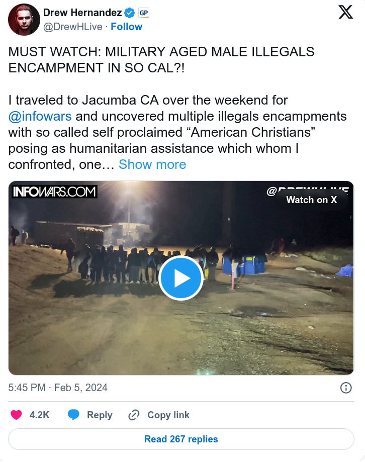 Compare the above pathetic report from 60 Minutes to this one from Drew Hernandez giving details about a border encampment of military-age male invaders in California.