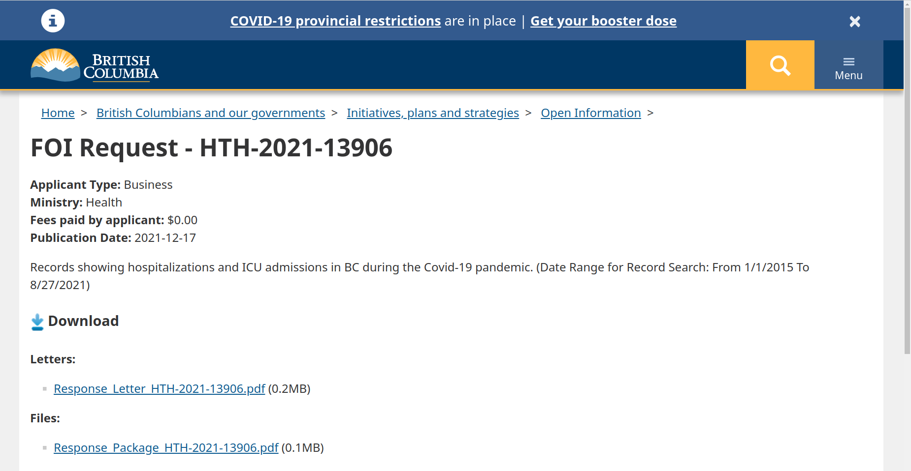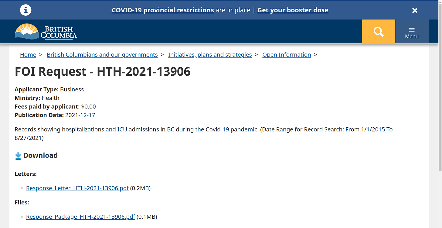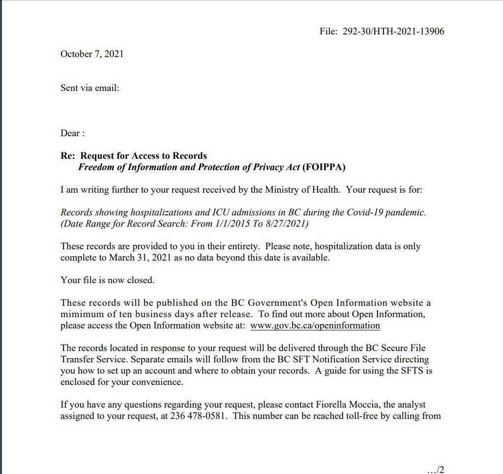 I have a FOIP request in with Alberta Health Services. In January, AHS posted graphs showing that about half of âbreakthroughâ cases, and hospitalization and death among breakthrough cases were people who were infected within a week of their first jab.(I.e. temporary immune suppression). As well, these people were counted as unvaccinated, so it inflated the vax vs unvaxed hospital and death statistics. I'm asking for records of their analysis of their data and communication regarding the decision to remove the graphs.
