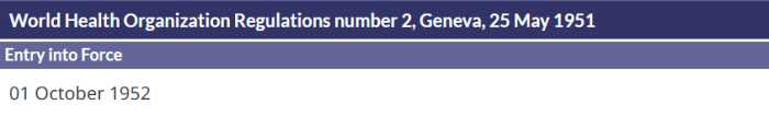 1969: International Health Regulations (1st Edition) replaced ISR. These are legally binding on all Member States.