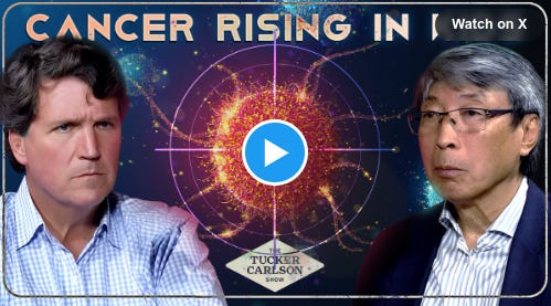 In a post on X, Carlson warns that “Covid, and the vaccines that didn’t stop it, are likely causing a global epidemic of terrifyingly aggressive cancers.”