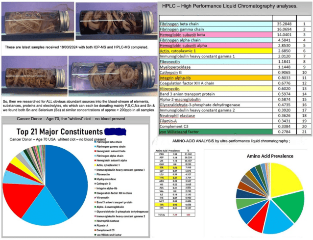 Analysis by Greg Harrison’s team and Dr. Kevin McCairn revealed that these clots: