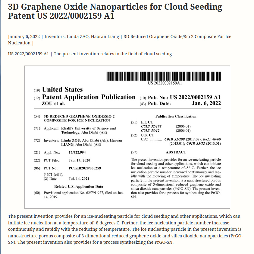 You Are Not Sick. You Are Being POISONED: 3D Graphene Oxide Nanoparticles for Cloud Seeding Patent US 2022/0002159 A1