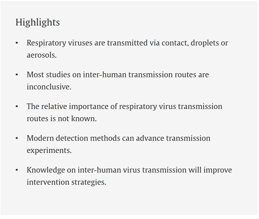 Many outbreaks have been investigated retrospectively to study the possible routes of inter-human virus transmission. The results of these studies are often inconclusive and at the same time data from controlled experiments is sparse. Therefore, fundamental knowledge on transmission routes that could be used to improve intervention strategies is STILL MISSING - ScienceDirect